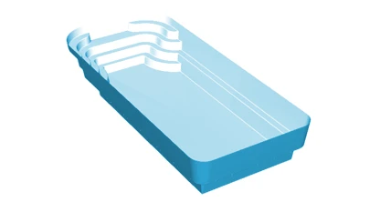 Disponible à travers 7 modèles allant de 5,40m à 10,40m de long, cette gamme de piscine à la forme rectangulaire se démarque avec son escalier esthétique et sa marche de sécurité, idéale pour les enfants en bas âge.